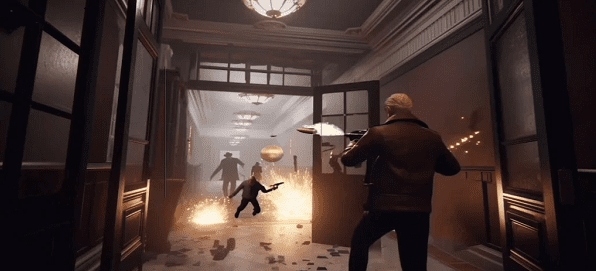 1.操作人物在走廊射击,击败敌人,完成等级目标。