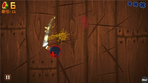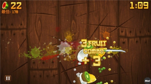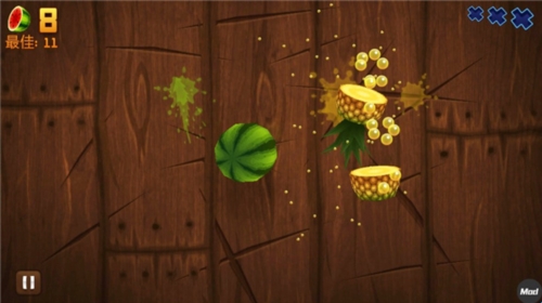 3、当水果出现的时候,你不必切开它。你可以让水果飞一会儿,当它遇到其他水果时,可以一次过切,也可以直线切。组合的机会更大。