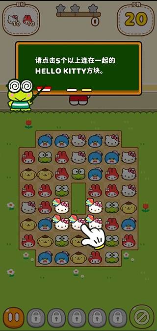 2、请点击两个以上连在一起的hellokitty方块,将其消除。
