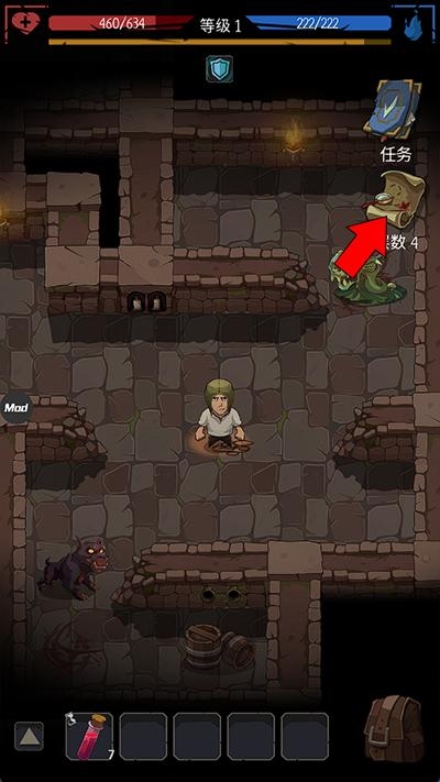 1、在进入地牢后,我们点击任务下方的地图图标即可查看当前所处地牢地图