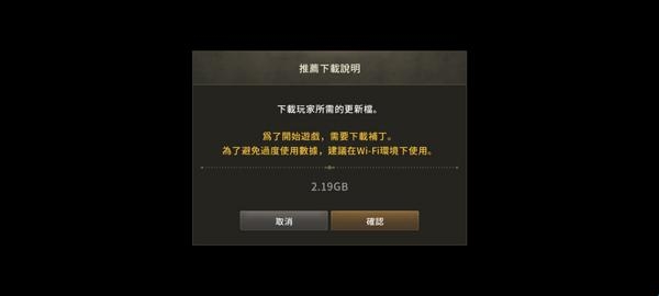 4、第一次进入游戏的玩家需下载2.19G的数据文件;