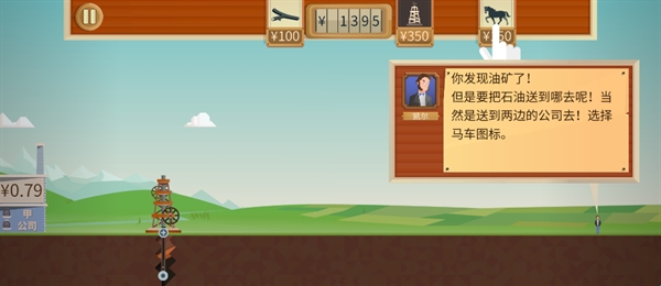 6、当你挖到石油之后,就可以点击马车图标,雇佣马车将使用运输到左公司卖掉了