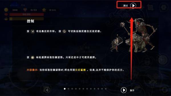 5、游戏正式开始前会有一段新手教程,玩家可跟随引导完成,或者点击右上角跳过按钮跳过;
