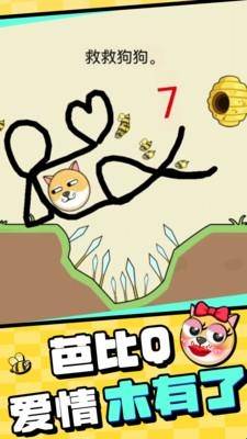 通关攻略:先画一个半圆,将狗狗圈起来,让蜜蜂蛰不到狗狗。