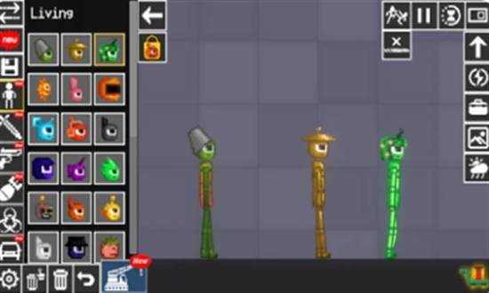 1、选择武器:玩家可以选择不同的武器和工具,如炸药、锤子、火箭筒等。