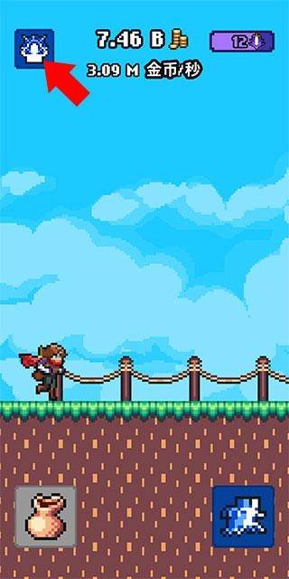 1、进入闲置猎手游戏后,完成剧情,不断地拾取金币,并点击左下角的袋子图标。