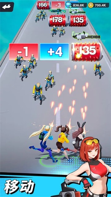 1、玩法新颖射击跑酷等你加入,招募更多美少女帮助自己消灭更多僵尸。