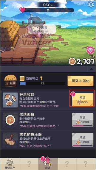 4、用糖饼购买收银台,正式开始酒馆的糖饼生意。