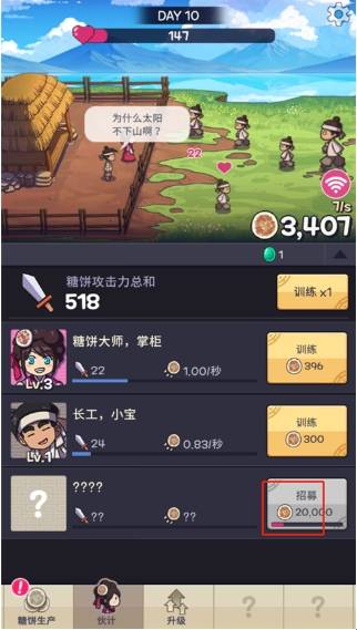 6、当糖饼达到一定数量时,解锁招募更多店员的功能。