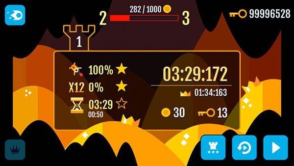 6、宝箱与爱心下,将提升金币的收取。夺得王冠奖励,对于全部关卡赢得最佳表现。分享红龙的技巧,击败城堡守卫者哦!