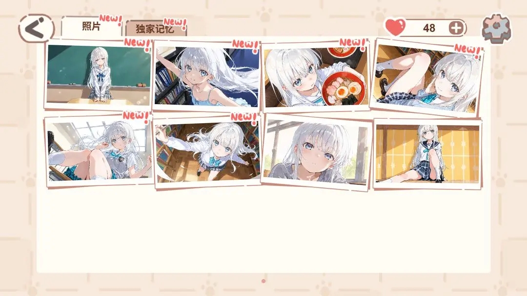 5、沉浸式体验与收集要素:游戏内置“相册”功能,保存已解锁的CG、录像及成就,支持反复回看;通过收集所有碎片和完成全剧情分支,达成“完美恋爱结局”。