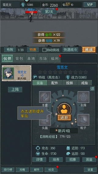 3、离线刷怪轻松获取资源,谨慎挑选不同的阵容队伍开启刷怪,收集物资的同时可以进一步提高角色等级属性。