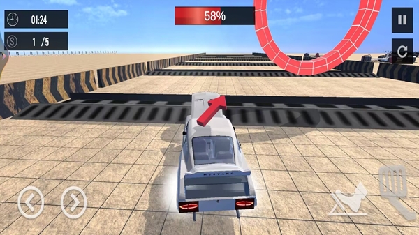 3、尝试汽车跳台比赛,驾驶汽车冲向跳台,在空中完成一定动作,落地后根据表现获得相应评分。