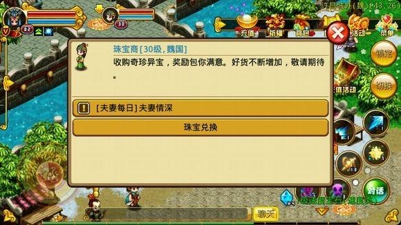 第一,都城外珠宝商,每天一点恩爱度,接了后在简单河东副本完成。