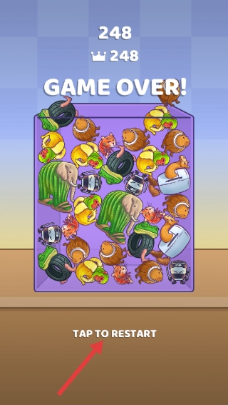 4、游戏结束后,点击【TAP-TO-RESTART】,重新开始游戏,争取获得更高分数。