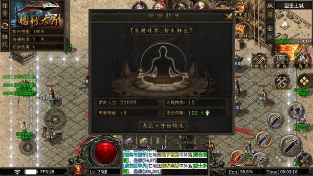 1、轮回转生:等级到达48级之后,消耗元宝和天地精华进行提升,每一级都会提升攻击倍数。