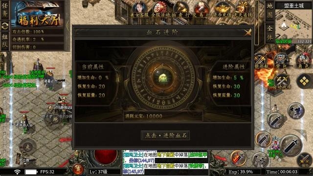 3、血石进阶:消耗元宝进行进阶,每一级都会获得生命属性,还能提高生命和蓝量的恢复速度。