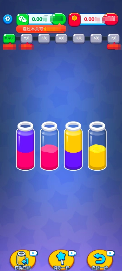 国粹消不停是一款非常适合日常消磨时间的休闲益智类手游。游戏非常考验玩家的空间排序能力,玩法也非常简单,由于其他人的失误,将装有不同颜色液体的瓶子中的液体混装,玩家需要将他们分离,并且将相同颜色的液体全部归于到一个瓶子中,即可成功通关哦,如果感觉关卡过于困难,还可以使用屏幕下方的道具来帮助通关。