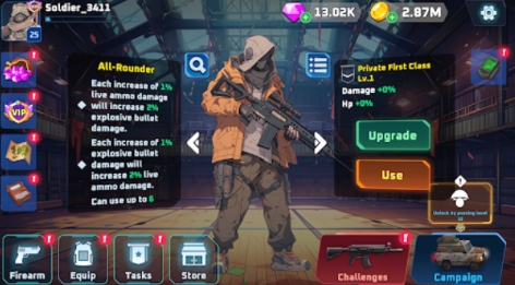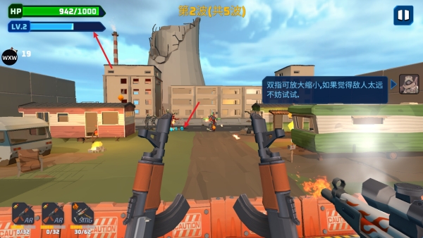 3、击杀僵尸会掉落蓝色经验,收集后可提升等级,增强战斗能力。
