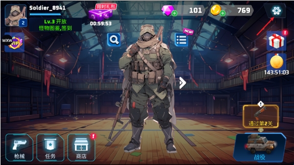 1、在游戏中,点击右上角的齿轮进入设置界面。
