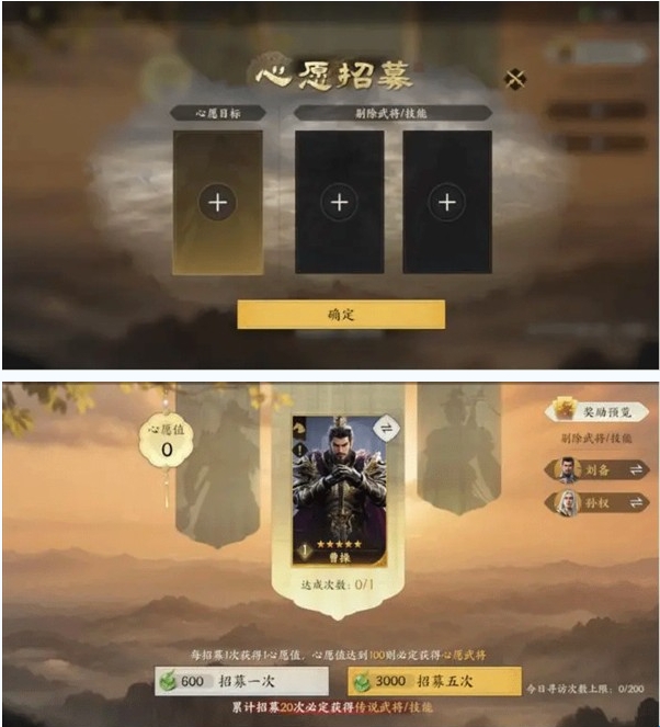 注:招募到心愿武将后应立即终止抽取,避免消耗后续保底次数。