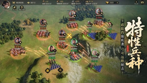 游戏的山川河流将不局限于阻隔行军的作用,玩家更可以利用地势进行作战,比如弓兵队伍可以站在高地,对敌方进行射杀,而如果对方是骑兵或盾兵,则无法直接反击,唯有快速行进到其身边才能再行反杀。