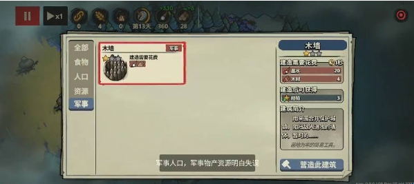 1、玩家需要合理管理和分配城镇中的资源,如食物、木材、石材等。