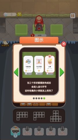 5、当三个形状都摆放完成后会进入战斗环节,这时收集的小球就派上用场了。