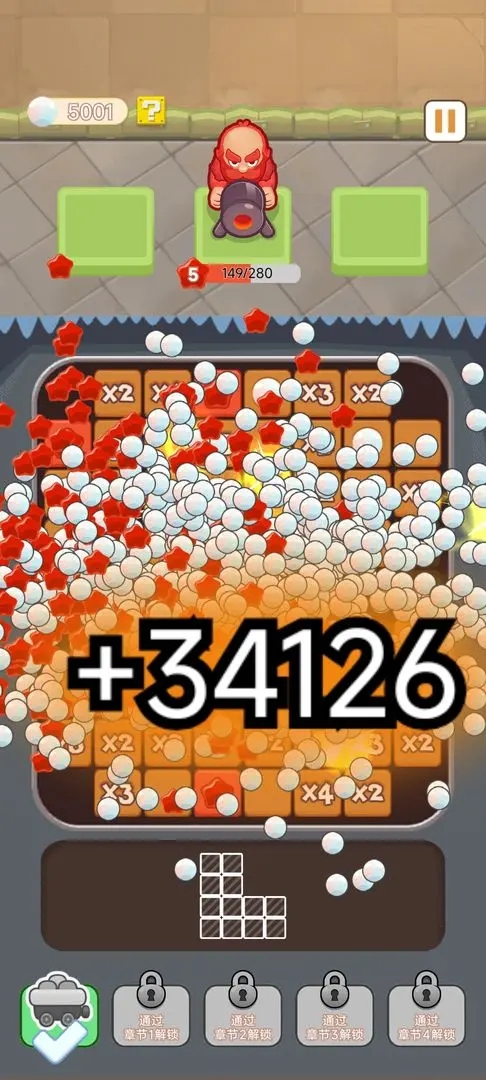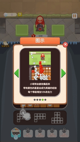 4、小球将会被收集起来,带有颜色的星星会成为英雄的经验,每个等级增加10%攻击力。