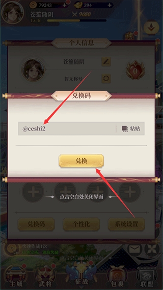 3、在输入框内输入本页面上方提供的福利兑换码,也可以直接进行复制粘贴,最后点击兑换即可。