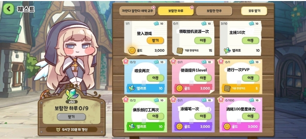 2、休闲日常设定,3分钟任务搭配7分钟捏脸,轻松无压力畅玩。