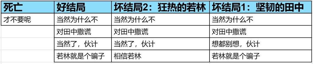 根据玩家在剧情中做出的不同选择会触发不同的结局,下面是统计的触各个结局所对应的选项: