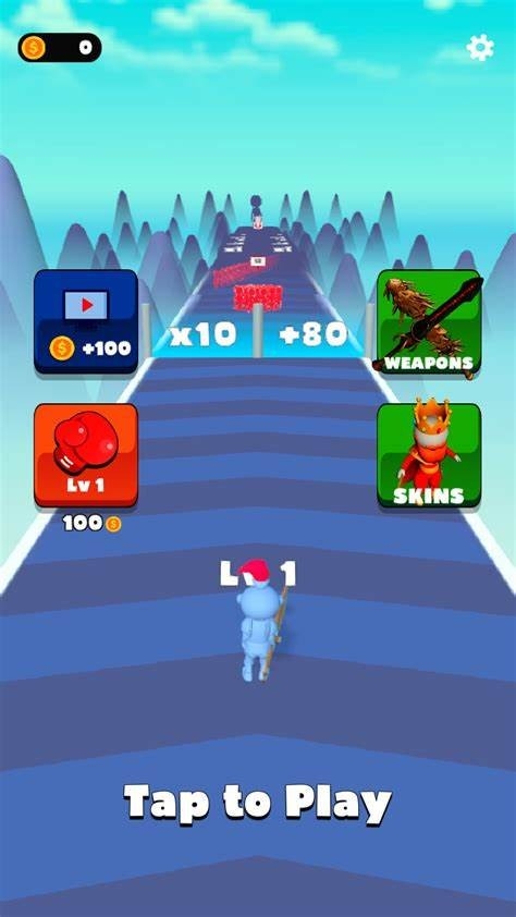 1、通过收集赛道中的道具、武器来为小人进行升级,以应对更加复杂的场景和挑战,丰富的关卡等你挑战。