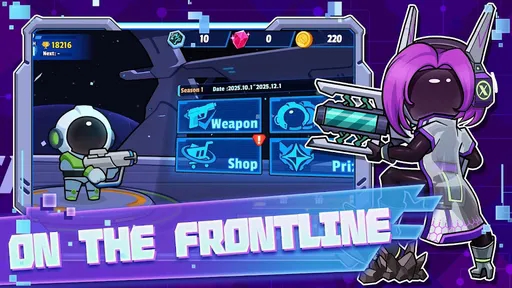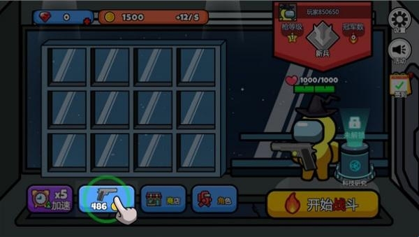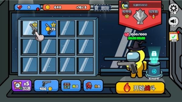 1、下载并安装太空饥饿大逃杀游戏,进入游戏后,通过购买武器来提升你的战斗能力。