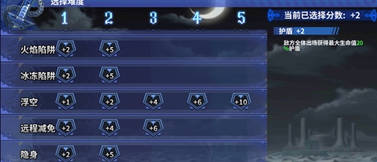 3、关于积分选择,复苏、荆棘、融合具有高难度挑战性,在实力不足情况,可以不选择这些,从而更轻松通关。另外核算积分可以根据(目标积分=固定关卡积分80积分+自选难度积分),所以选择自选关卡积分的时候,可以通过精准核算目标积分再进行选择。