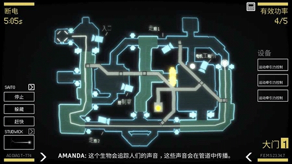 6、但有的时候任何方式都看不到异形,我没法判断异形位置怎么办呢?那就出来吧肯定不在附近,如果你想稳一点,声音开大,异形可能爬管道路过你的附近,它爬的时候也能听见撞击管道的声音,无非就是比它突袭你的时候声音小很多,而且没有叫声。
