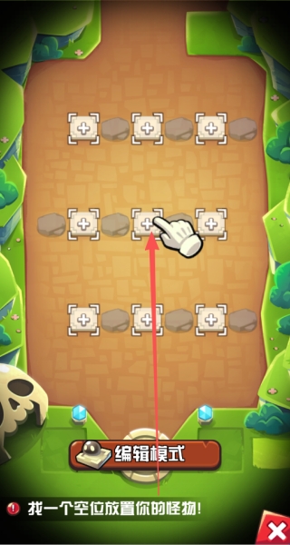 2、进入编辑模式后,找到空位点击放置自己的怪物。合理布置怪物的位置更好的进行攻击。
