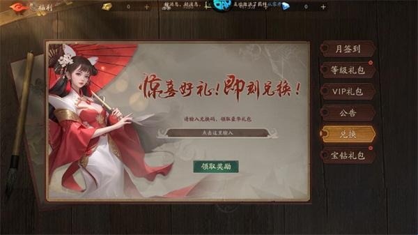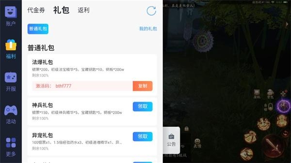 1、进入游戏后,点击首页悬浮球,领取礼包兑换码。