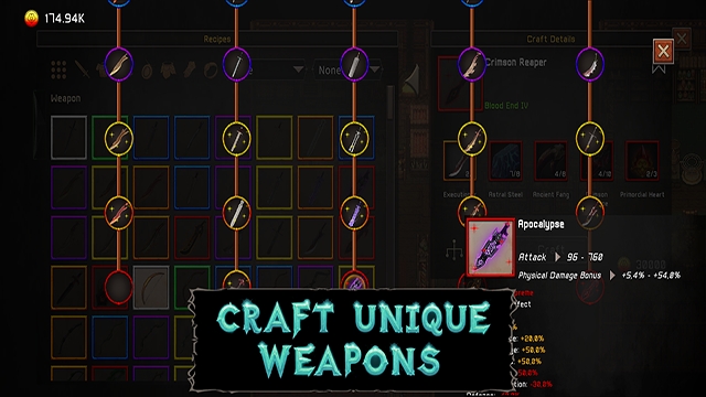 5、从怪物身上收集材料,在铁匠铺制造武器、盔甲和神器提升实力。