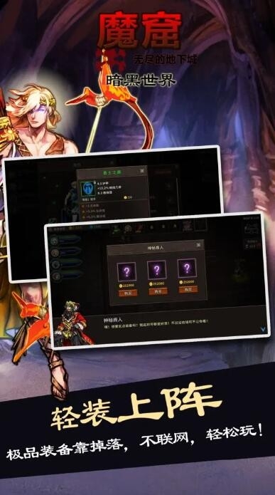 魔窟暗黑世界是一款以魔窟为游戏背景独家打造的冒险解谜类游戏,融合了暗黑风格,增添游戏的刺激感,以回合制玩法为核心。在游戏中,玩家是一名勇闯魔窟的勇士,可以先刷小型魔物怎强自己的装备,再与后续的boss进行激烈战斗,最后闯关成功。