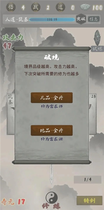 3、玩家可以从引气入体到筑基结丹,每个修行阶段都有不同的挑战和瓶颈需要突破。