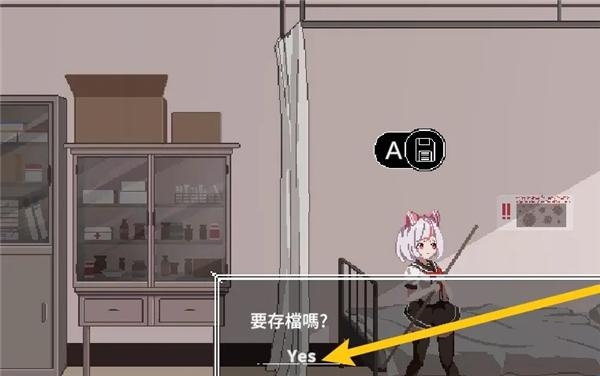 3、来到【床铺】交互界面,点击【YES】存档游戏即可自动治疗角色。