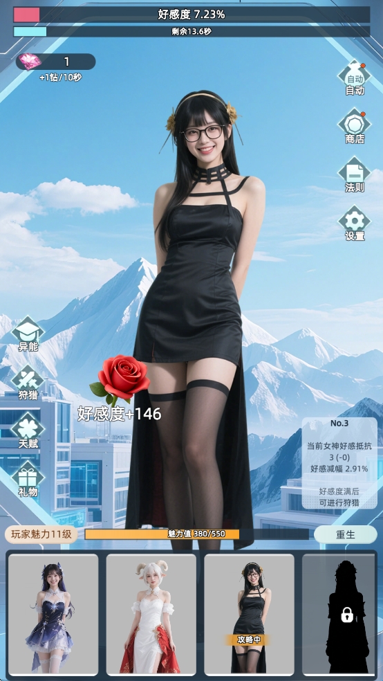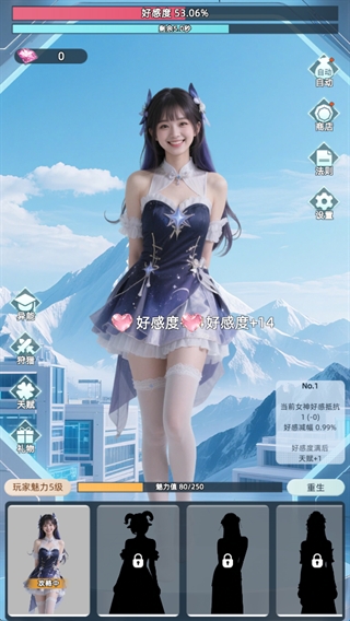 2、好感度系统:通过互动、送礼或完成特定任务提升女神好感度,解锁专属剧情或能力加成。
