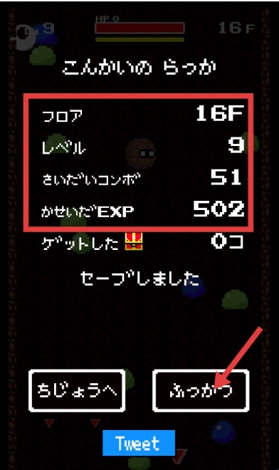 4、通关【16层】后查看结算,记录【等级-9】【最大连击-51】等数据,点击【复活】继续冒险。