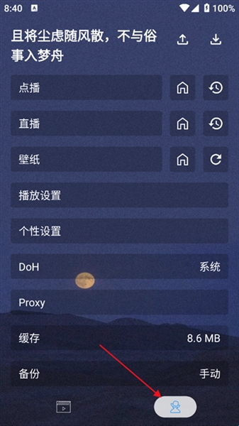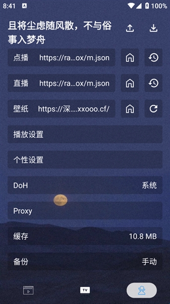1、打开软件后,首页是没有配置源的,点击我的界面。