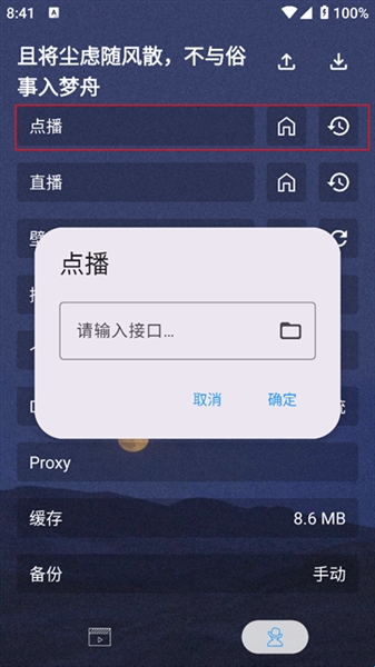 2、点击最上面的点播那一行,会弹出接口输入框。