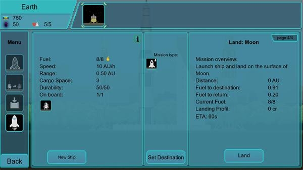 3、选好火箭类型后点击land按钮就可以发射火箭来探索宇宙了。