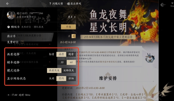 3、点击悬浮球,可以对云游戏进行设置,支持画质、帧率、模式等修改,设置完成后,点击返回。