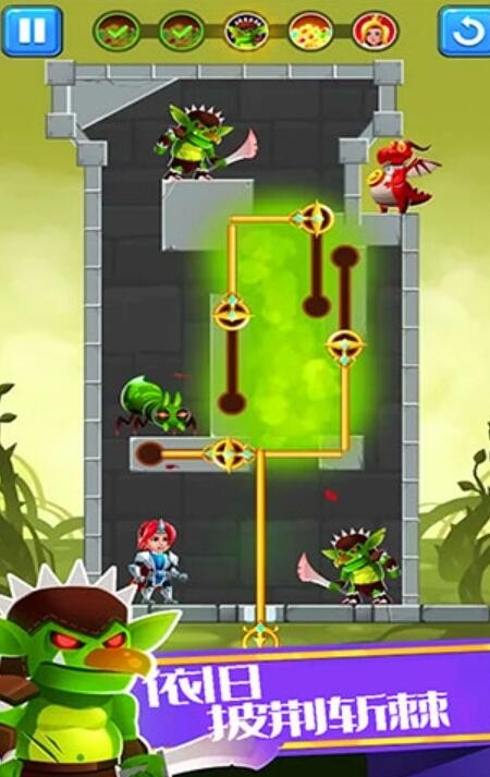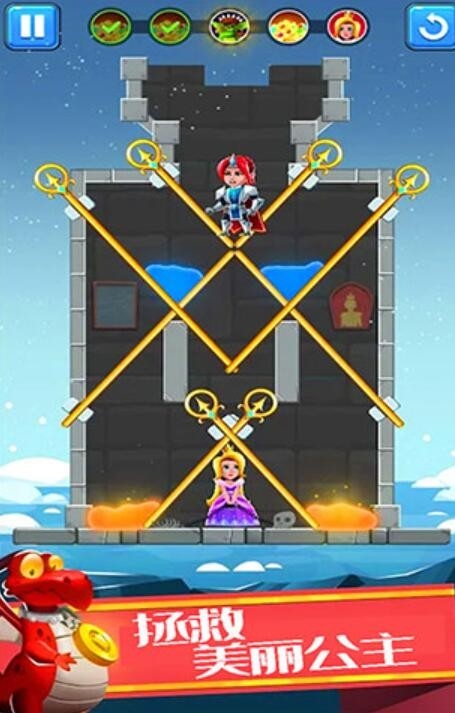 相信很多人都有看到选择拉杆闯关的游戏广告,但不知道哪个游戏才是,接下了小编要为大家介绍的这款叫做欢乐英雄大作战app的游戏就是以这样的内容为主要核心所打造的冒险闯关类游戏,内含丰富多彩的关卡设计,在游戏中,玩家将通过正确的拉杆步骤帮助勇士闯关难关,成功解救出公主,杀死怪物可以获得宝藏,对此类游戏感兴趣的小伙伴可以下载试试。