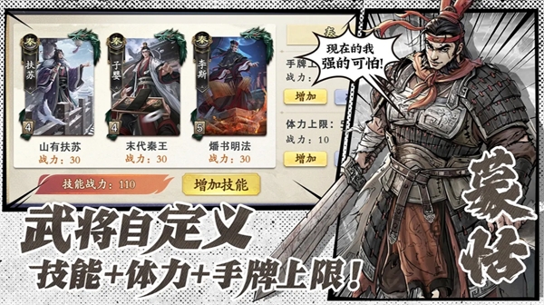1、历史名将卡牌化:游戏将中国历史上的众多名将化身为卡牌角色,每张卡牌都拥有独特的属性、技能和背景故事,让玩家在收集和使用卡牌的过程中,深入了解历史人物。